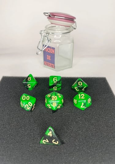 Estilo manchado: combina un color base con contrastes irregulares que crean un efecto visual dinámico y único en cada dado